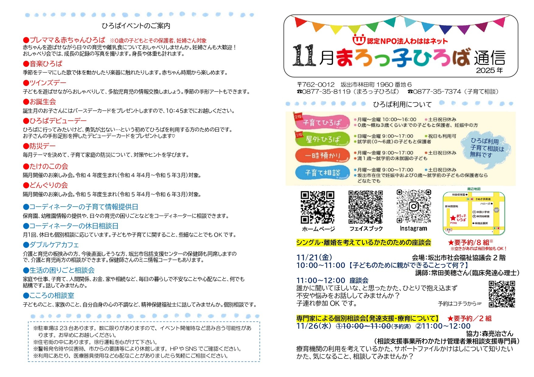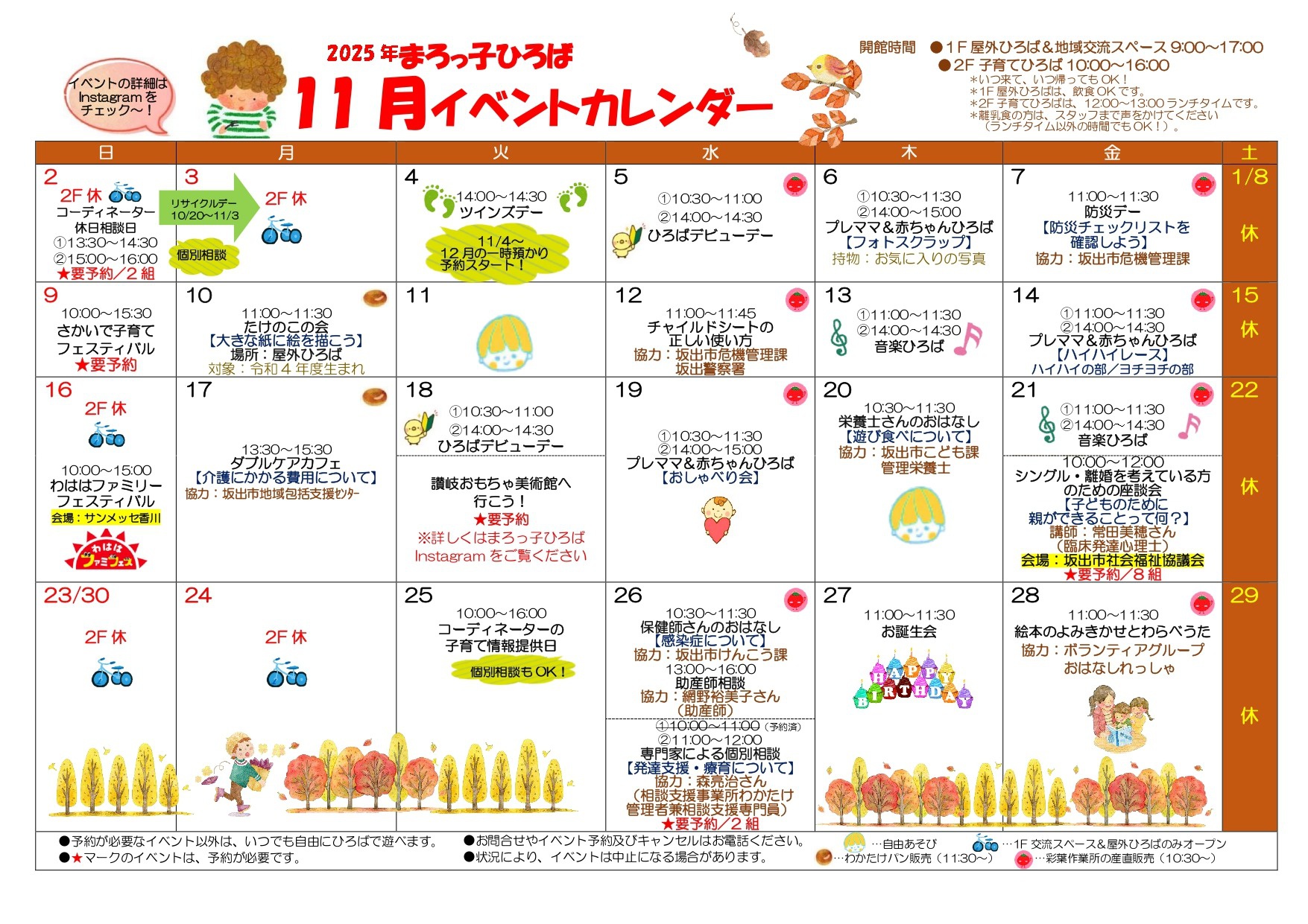 さぬきこどもの国、はぐはぐランドうたづ、神愛館、あそvivaぶんぶん、国分寺支所、国分寺図書館、新居東児童館、新名柏原児童館、国分児童館、イオン坂出店、イオンタウン宇多津、ハローズ林田店、ユープラザ宇多津、スーパーセンター宇多津、ビッグ国分寺など(順不同)