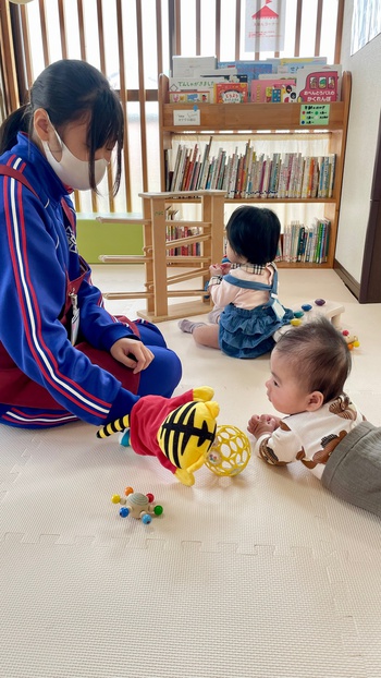 はじめは少し緊張している様子でしたが、子どもたちと遊んだり、歌をうたったり、抱っこしたりしているうちに、自然と笑顔があふれ、次第に子どもたちとも打ち解けていきました。その姿を保護者の皆さんもあたたかく見守ってくださっていました。