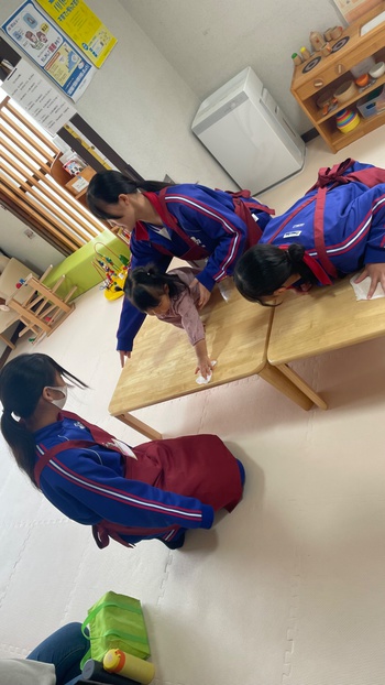 先日、ひろばに中学生のお姉さんたちが職場体験に来てくれました。