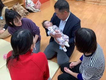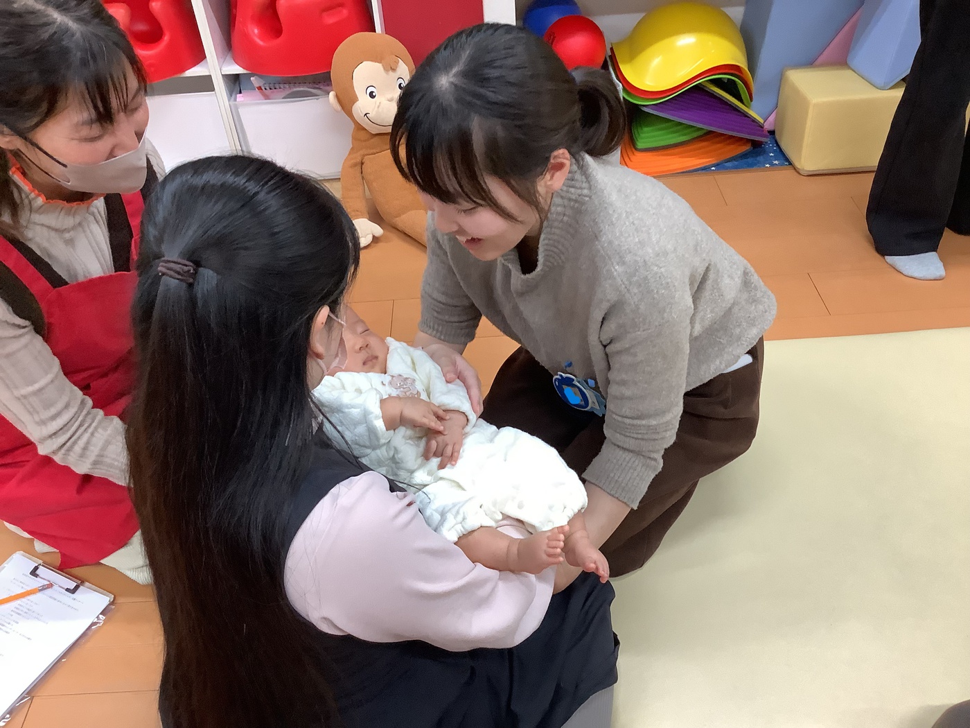 後半は、ひろばのねんねちゃんの会に合流し、先輩ママと交流したり、赤ちゃんを抱っこさせてもらったりしました。