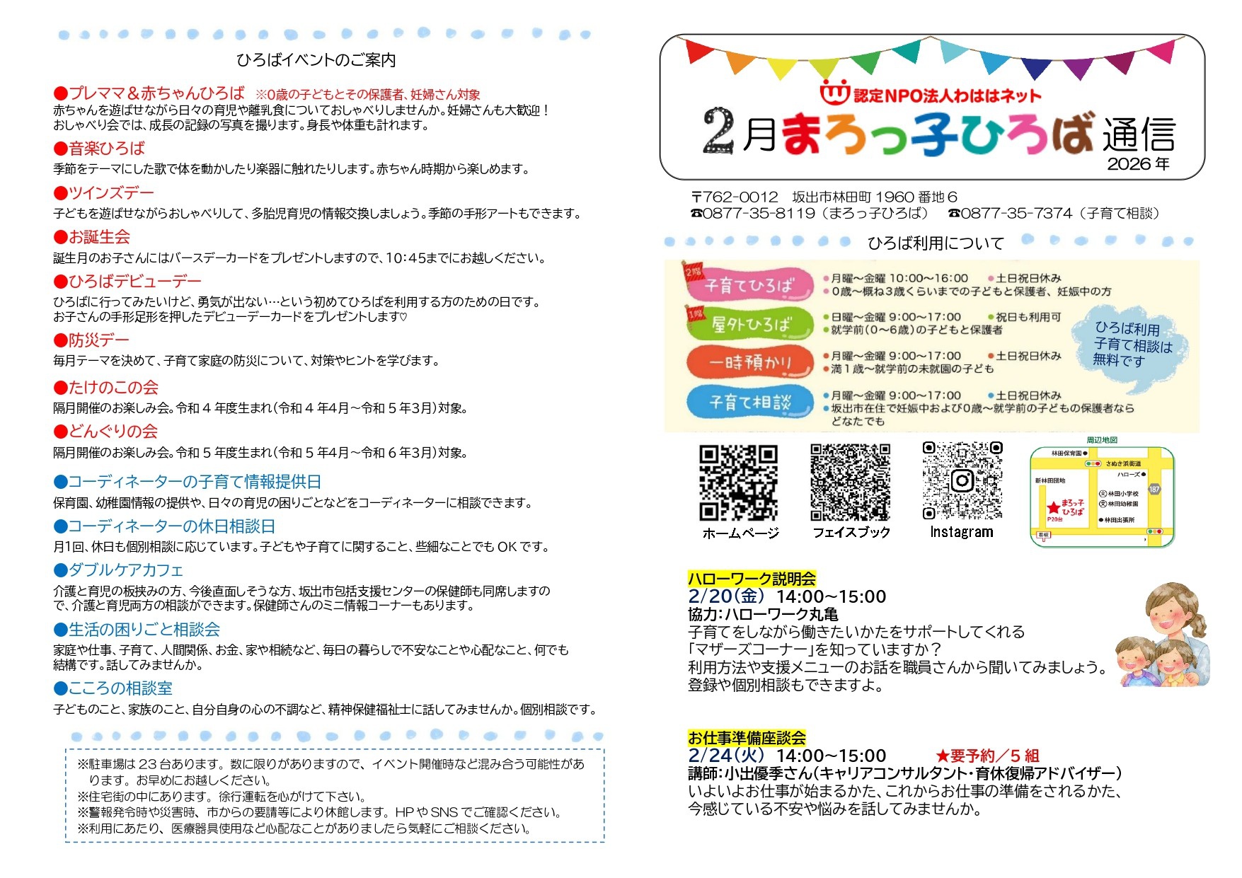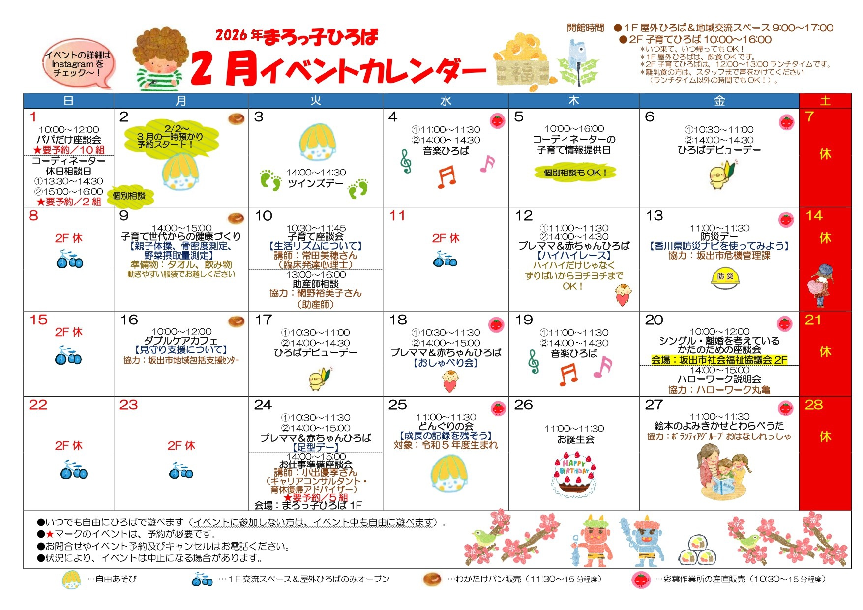 さぬきこどもの国、はぐはぐランドうたづ、神愛館、あそvivaぶんぶん、国分寺支所、国分寺図書館、新居東児童館、新名柏原児童館、国分児童館、イオン坂出店、イオンタウン宇多津、ハローズ林田店、ユープラザ宇多津、スーパーセンター宇多津、ビッグ国分寺など(順不同)