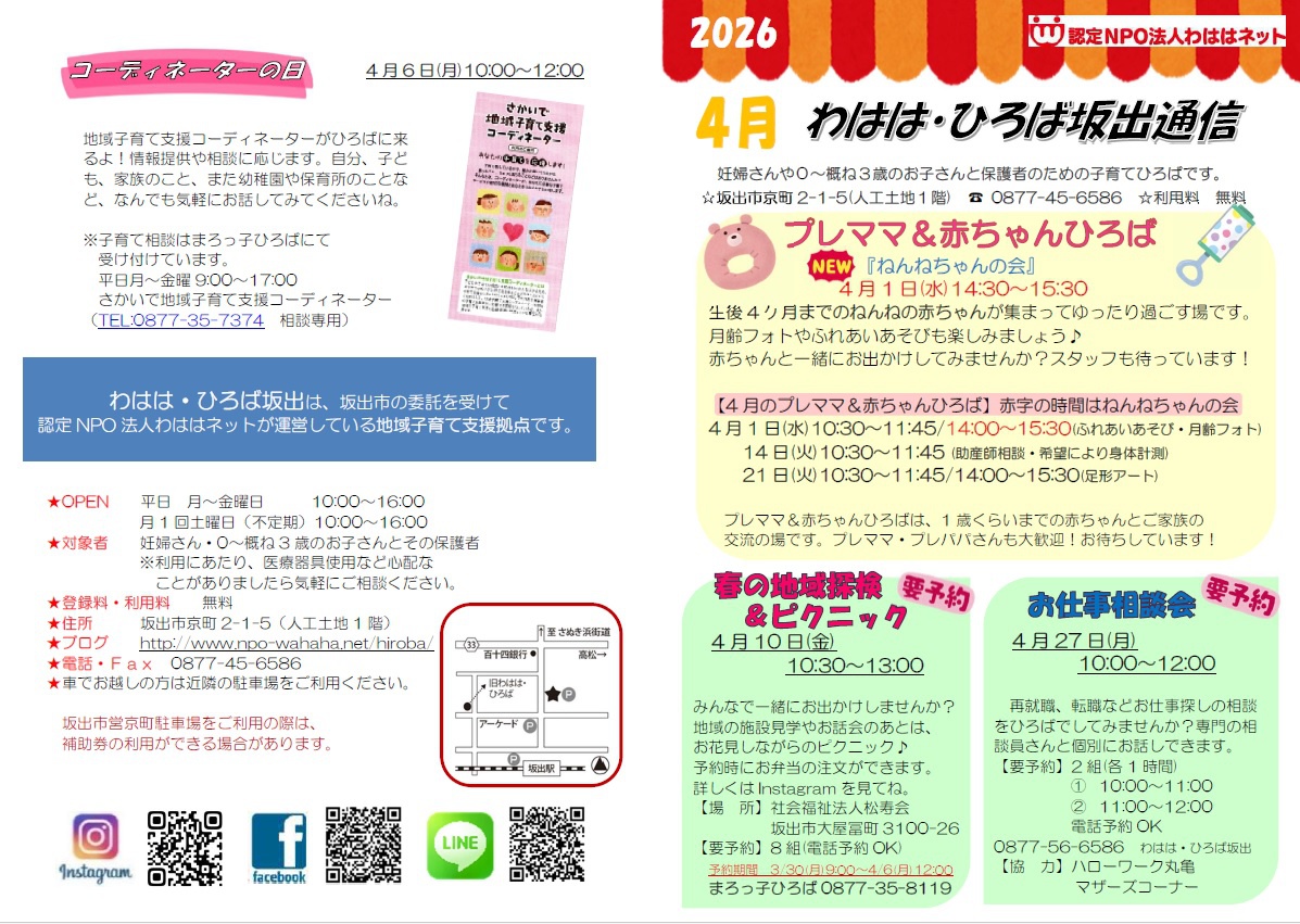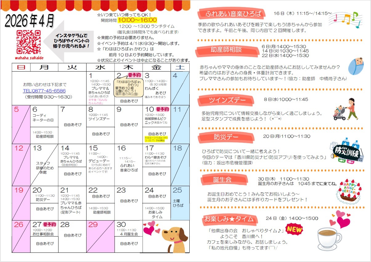 【予定表:坂出】4月の予定表ができました