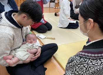 始めは慣れないプレパパさんプレママさんもすぐ上手にだっこができるようになりました。