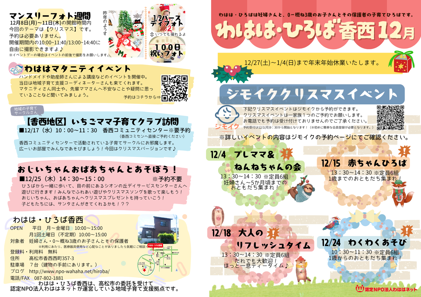 ※クリスマスイベントは一家族1つの予約とさせていただきます。
