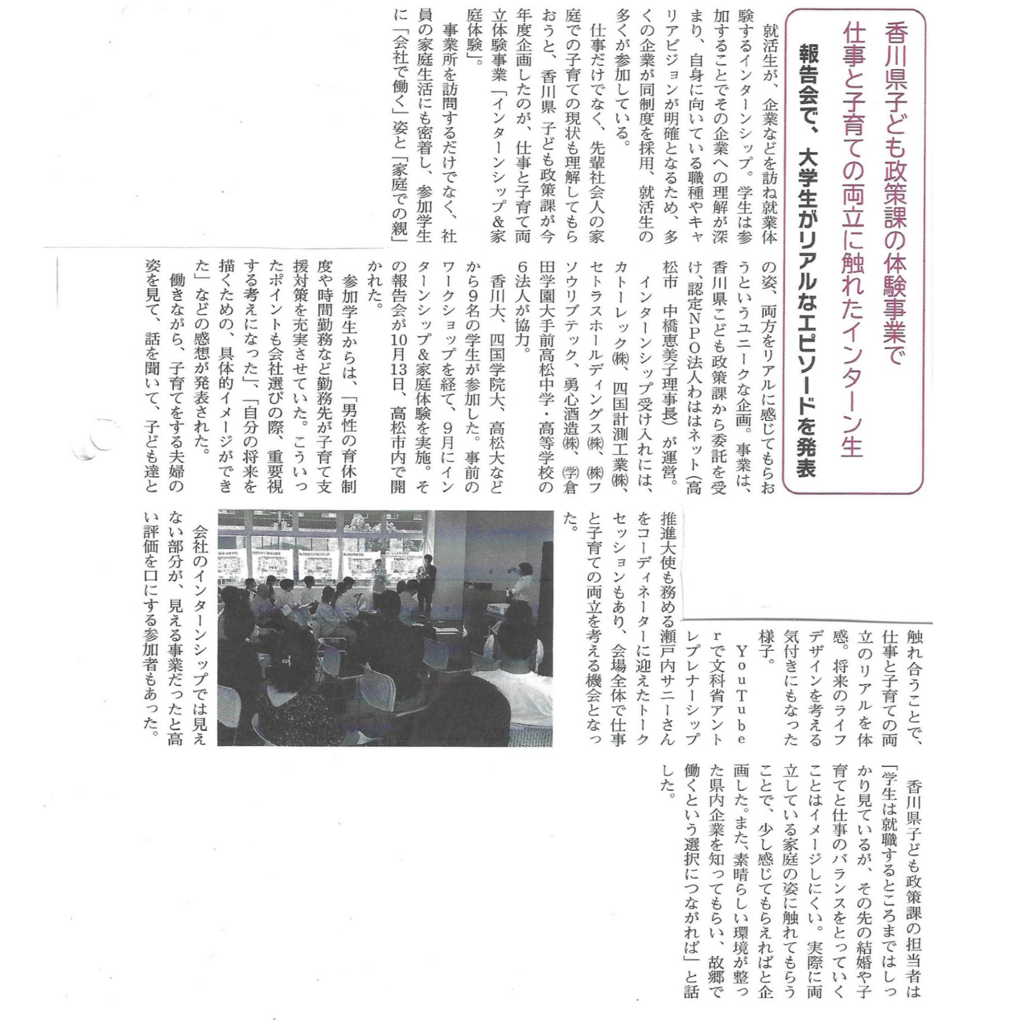 | 企業の子育て支援活動促進事業 | 香川県児童・青少年健全育成事業団 | |