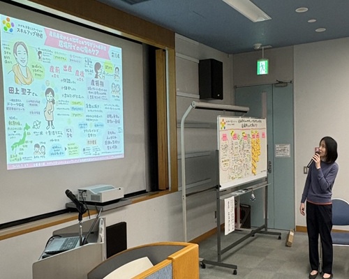 また、今回の研修会でもグラフィックレコーディング講師のさのはるかさんにご協力いただき、研修に参加できなかったステーション登録団体の職員の皆様にも共有できる、まるでその場に参加しているかのように研修の内容を感じられる素晴らしい記録となっています。
