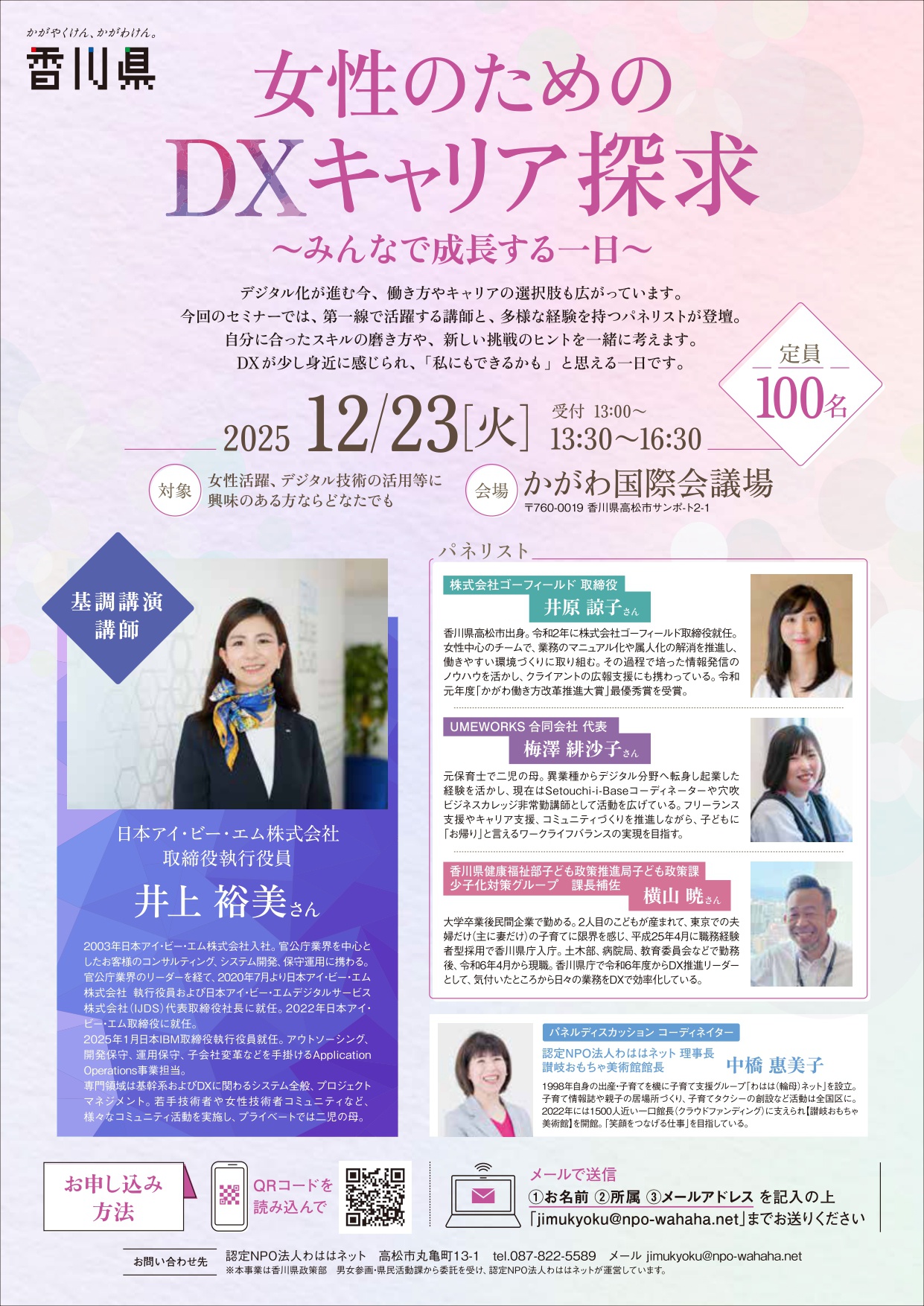 社会におけるデジタル化が加速する中、女性がデジタルスキルを習得することの必要性や優位性を理解するとともに、女性が社会活躍するために求められるスキルなどをロールモデルから学ぶことなどで女性のキャリア形成に向けた意識醸成を図ることを目的としています。