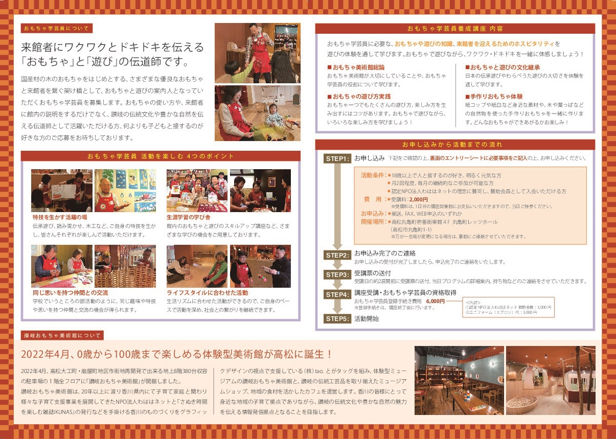 おもちゃ学芸員としてご登録いただくために、2日間の養成講座を開催しております。